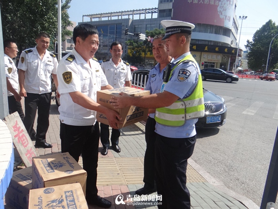 王榮代表送清涼小組表達(dá)了對高溫天氣下堅守崗位的交警辛苦工作表示崇高敬意,“交警們頭頂烈日,不怕辛苦戰(zhàn)斗在一線,以高度的責(zé)任感確保了總站周邊的交通秩序,作為共建單位理所應(yīng)當(dāng)承擔(dān)社會責(zé)任,表達(dá)企業(yè)愛心,表達(dá)對交警同志的崇敬以及對他們工作的支持?!?/p>