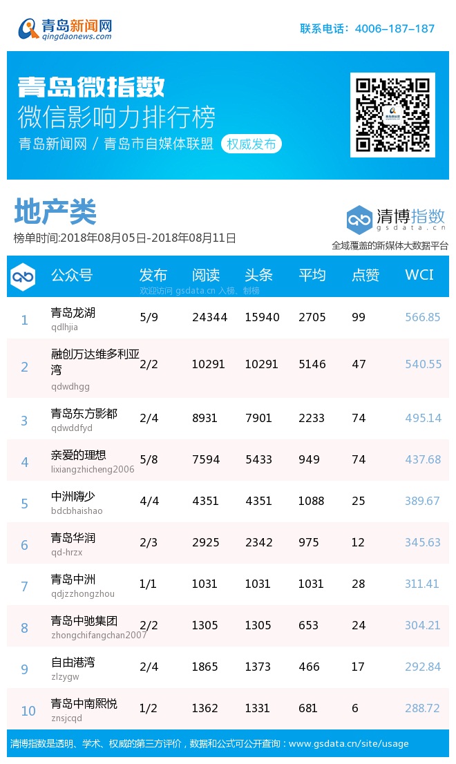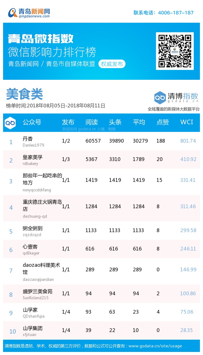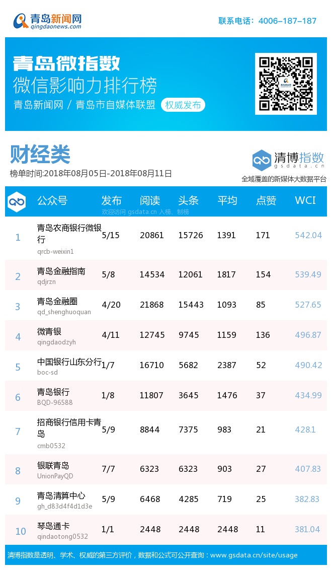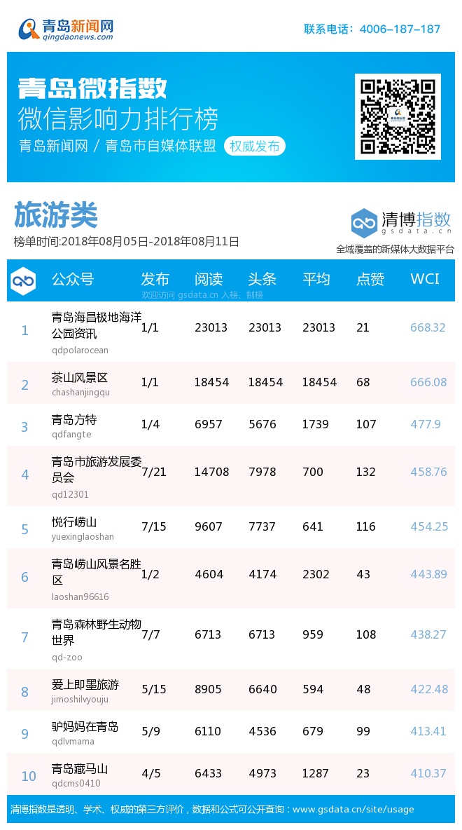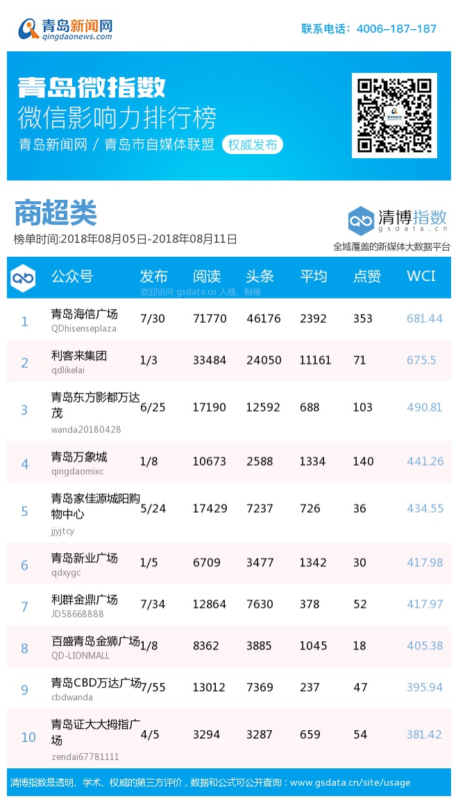 3、本次榜單收錄了青島14個行業(yè)微信公眾號,如您的賬號暫未收錄,可聯(lián)系4006-187-187。