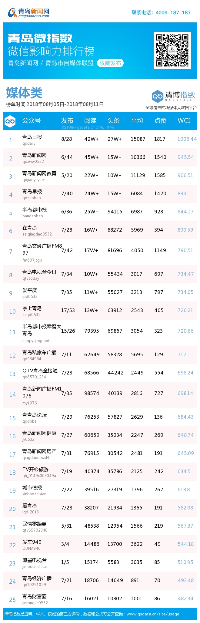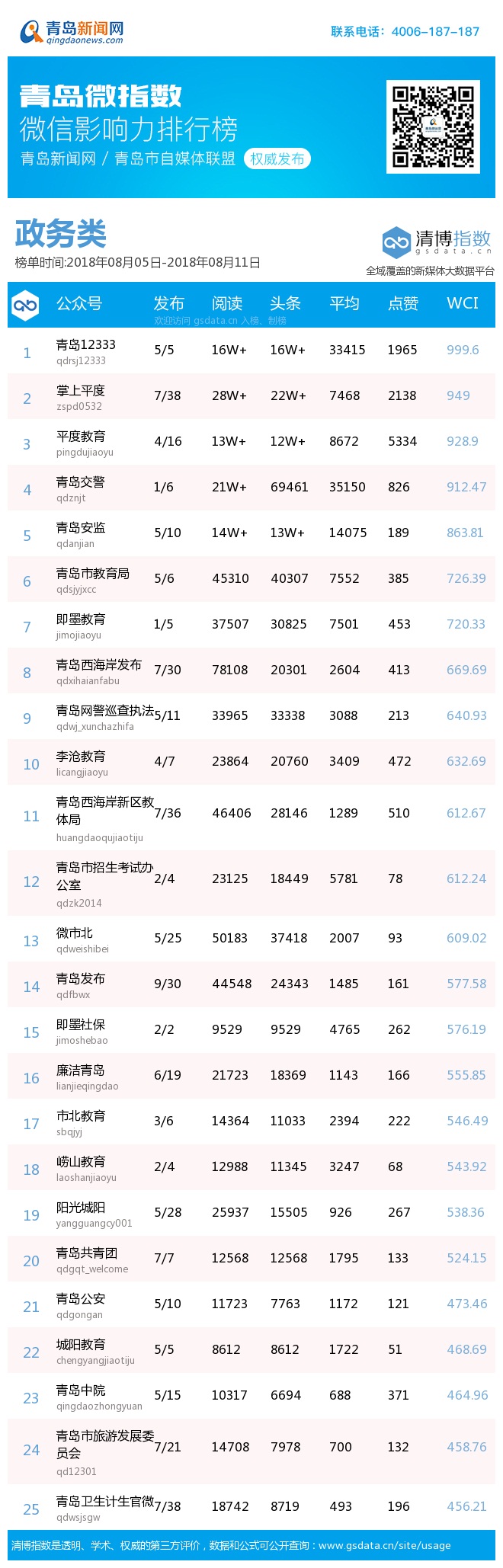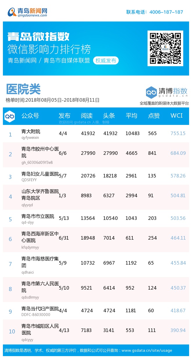 3、本次榜單收錄了青島14個行業(yè)微信公眾號,如您的賬號暫未收錄,可聯(lián)系4006-187-187。
