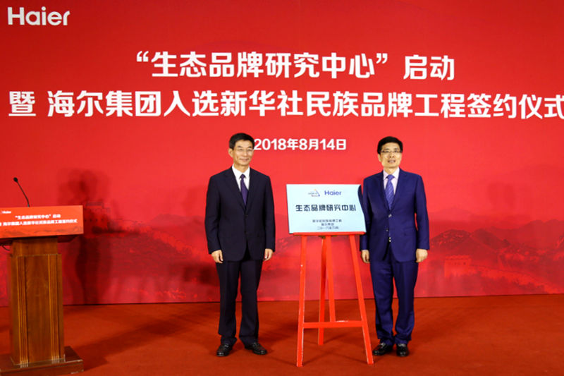 新華社副社長兼秘書長劉正榮與海爾集團(tuán)總裁周云杰共同為“生態(tài)品牌研究中心”揭牌。