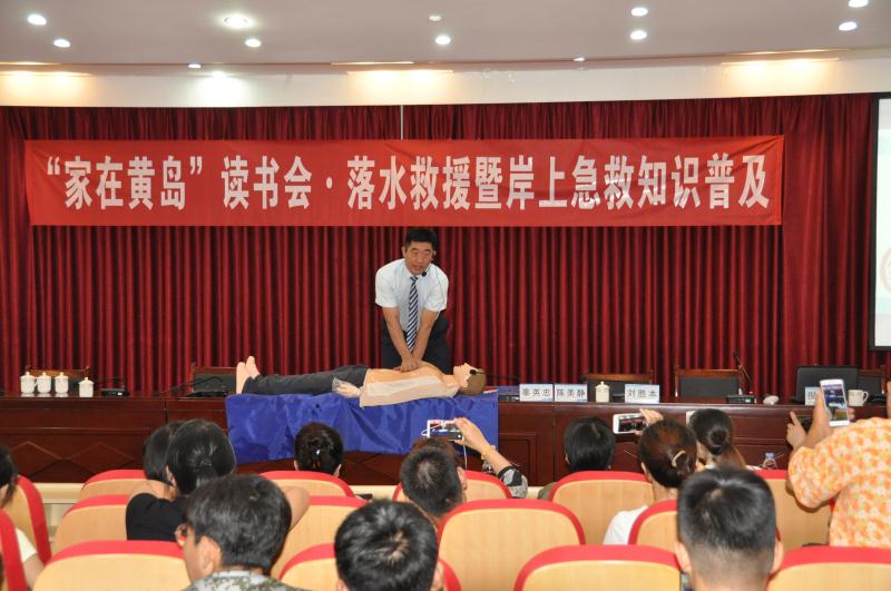 上午九點(diǎn)半,讀書(shū)會(huì)開(kāi)始。首先,由西海岸新區(qū)第一高級(jí)中學(xué)的劉勝本老師向大家講解了海上自然災(zāi)害現(xiàn)象及成因、游泳流域的安全判斷等常識(shí)。隨后,由原山東省游泳隊(duì)運(yùn)動(dòng)員、資深游泳教練辜英忠老師向大家講解了發(fā)生溺水事故的常見(jiàn)原因和在水中如何進(jìn)行自救、互救等常識(shí)。最后,來(lái)自西海岸新區(qū)中心醫(yī)院的外科醫(yī)生李寧波大夫?yàn)榇蠹抑v解并親自示范了對(duì)溺水者實(shí)施緊急心肺復(fù)蘇的常識(shí)與技能。