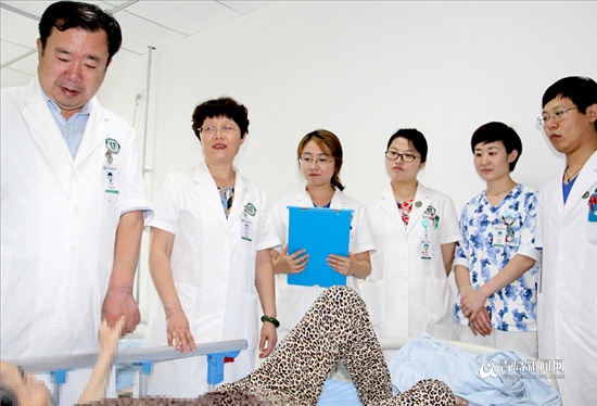 王冠軍院長(左一)帶領(lǐng)王俊主任團隊查房。