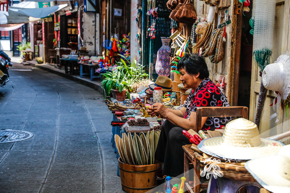 漫步偏巖古鎮(zhèn)街頭。首席記者 雷其霖 攝