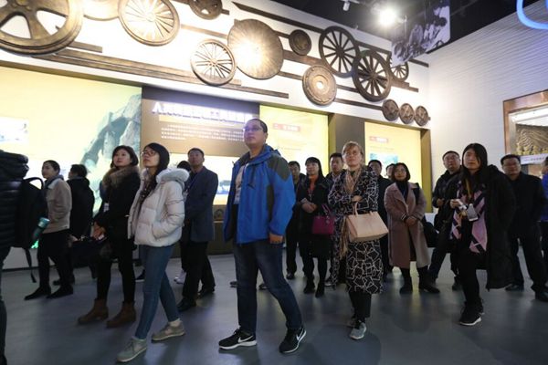 采訪團(tuán)成員參觀重汽汽車博物館。