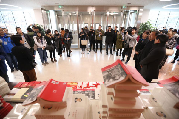 12月11日,“第十三屆中國網(wǎng)絡(luò)媒體山東行”采訪團(tuán)記者走進(jìn)山東出版集團(tuán)山東書城。