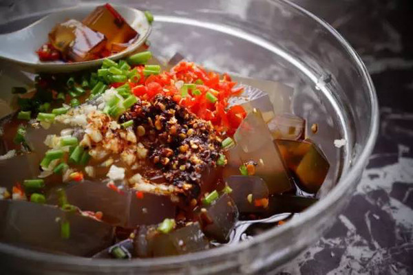 石花菜既可做涼拌,也能制成涼粉,后者吃法在日照特別常見,當(dāng)?shù)厝顺⑵渥鳛橄钕戮菩〔?,口感爽利脆嫩?/p>