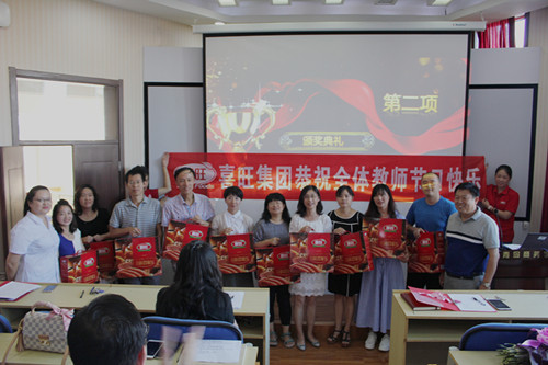 下午4:00教職工匯聚一堂,召開隆重的教師節(jié)表彰大會。商務學校副校長劉剛宣布表彰決定,同時介紹喜旺集團本次商務學校獻禮之行。