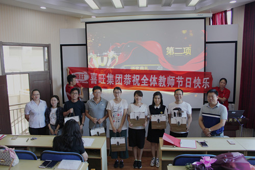 “幸運抽獎”——喜旺集團的教師節(jié)大禮包為商務學校的教師帶來驚喜和歡樂!選擇了教師這一職業(yè)就意味選擇了責任和奉獻,意味著和這個時代五光十色的名利永遠無法交集,然而,每當受到來自各行各業(yè)的尊重和贊譽時,這種職業(yè)成就感和幸福感是任何一種職業(yè)無法比擬的。這是作為老師最大的財富!喜旺集團帶來的這份尊重與支持,為商務學校教師更添成就感和職業(yè)幸福感。