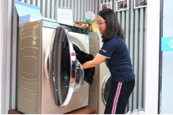 第一,容量大,超大洗烘設(shè)備一次可以清洗完27KG的衣物。以往用戶家中難以清洗的被子、床單、窗簾、沙發(fā)套、汽車坐墊等大件物品,可在這里實現(xiàn)快速洗滌、烘干;