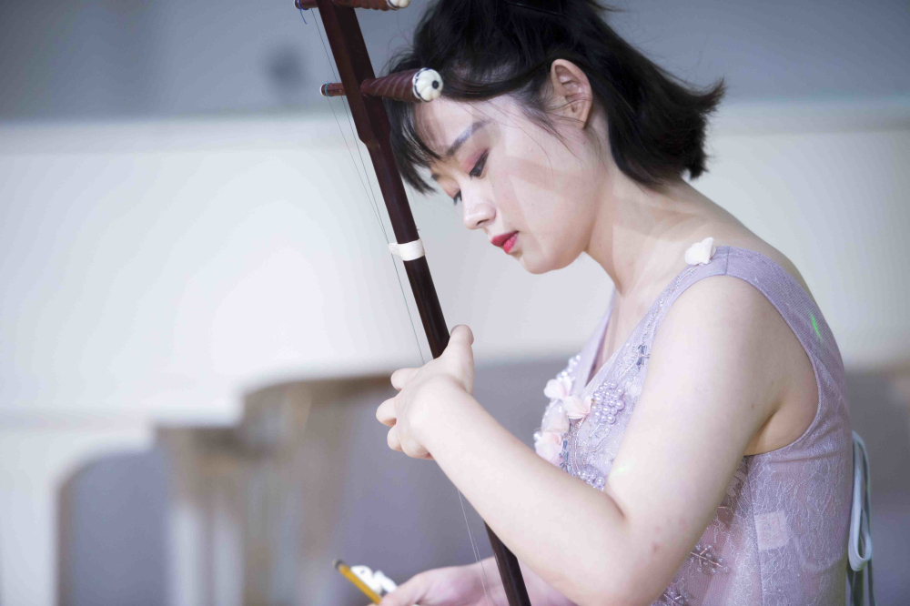 晚會開場,著名話劇演員關鍵老師,為觀眾們帶來了慷慨激昂的《天下為公》,隨后禪院院長張川、前國際演講會總監(jiān)周濤和“閱讀時光”文學社的成員們?yōu)橛^眾們獻上《山居秋暝》、《就是那一只蟋蟀》、《春江花月夜》等古今詩篇的精彩朗誦。華韶之韻美學空間的專業(yè)老師們用現場配樂的方式,將詩文與古典音樂完美融合,呈現出一場視聽盛宴。