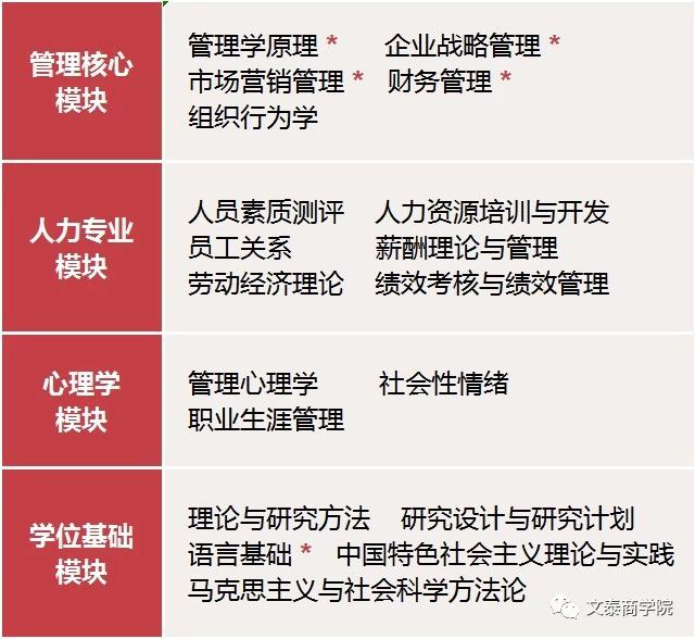 管理核心模塊+人力資源模塊+心理學(xué)模塊+學(xué)位基礎(chǔ)模塊