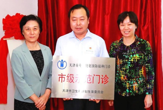 天津市衛(wèi)生計生委副主任張富霞向大王莊街社區(qū)衛(wèi)生服務(wù)中心院長邱鴻春頒發(fā)“市級示范門診”牌匾