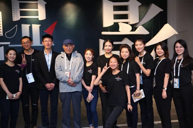 導(dǎo)演韓三平與會務(wù)人員在“顯影”主題墻前合影