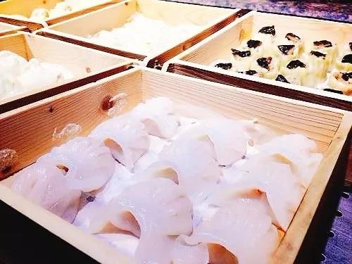鮮活的刺身檔:挪威三文魚、冰點北極貝等