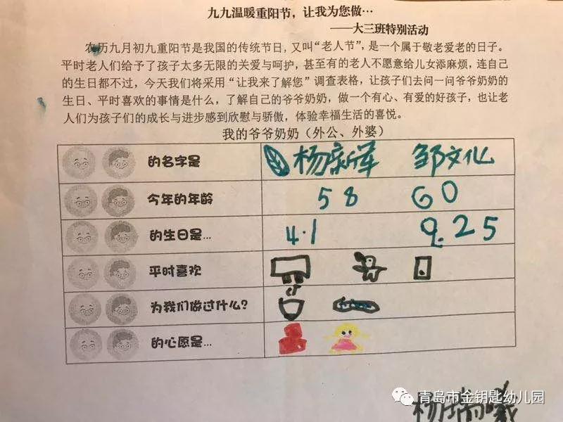 孩子們去問一問爺爺奶奶姥姥姥爺?shù)纳?、平時喜歡的事情是什么,了解自己的爺爺奶奶姥姥姥爺,做一個有心、有愛的好孩子。