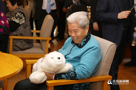 參觀過程中,中日科學(xué)家不時(shí)與院內(nèi)工作人員及病人進(jìn)行親切交流,松喬康復(fù)醫(yī)院的老人還與日本研發(fā)團(tuán)隊(duì)帶來的機(jī)器海豹進(jìn)行了互動(dòng),現(xiàn)場(chǎng)氣氛和諧、融洽。
