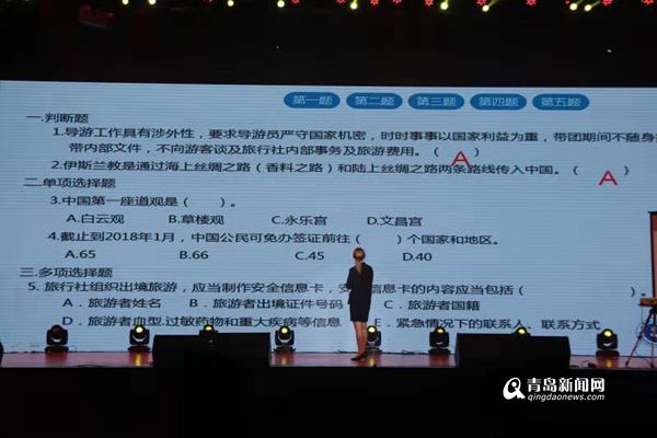 知識問答環(huán)節(jié),選手們沉著應(yīng)對,就導(dǎo)游人員職業(yè)道德素養(yǎng),導(dǎo)游業(yè)務(wù)知識,文明旅游知識,突發(fā)事件處置等一一作答。在才藝運(yùn)展示環(huán)節(jié),精彩的山東快板、歡快的舞蹈等表演,讓觀眾們看的如醉如癡,充分展現(xiàn)了島城導(dǎo)游的綜合素質(zhì)。