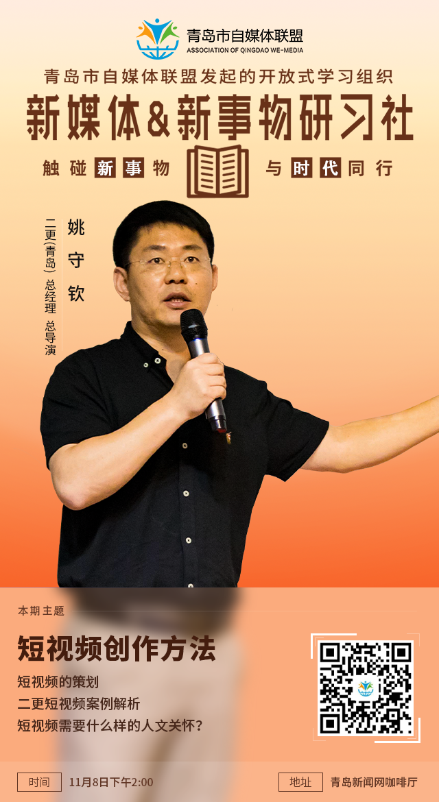 青島新聞網(wǎng)11月6日訊 (記者 吳洪濤)由青島市自媒體聯(lián)盟主辦的新媒體&新事物研習(xí)社第八期將于11月8日下午在青島新聞網(wǎng)咖啡廳舉行。