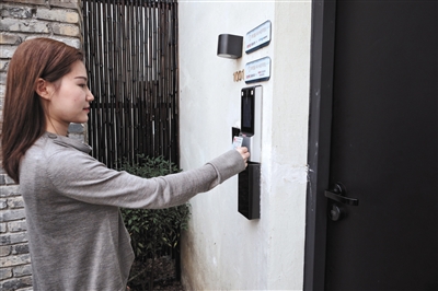 工作人員演示通過驗(yàn)證身份證和人臉識(shí)別打開房門。