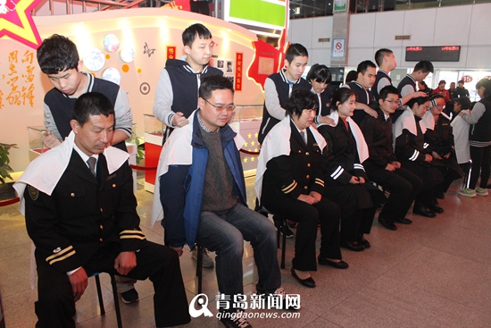 青島新聞網(wǎng)11月19日訊(記者 于泓 通訊員 李男)本應(yīng)是成為重點(diǎn)照顧對(duì)象的盲校學(xué)生卻來(lái)到汽車站,免費(fèi)為站務(wù)人員以及旅客提供免費(fèi)按摩治療。今天上午,在感恩節(jié)來(lái)臨之前,青島市盲校按摩職業(yè)中專二年級(jí)的13名學(xué)生在老師的帶領(lǐng)下來(lái)到交運(yùn)集團(tuán)青島長(zhǎng)途汽車站,通過(guò)為站務(wù)員、客車司機(jī)以及旅客愛(ài)心按摩的形式感謝30多年來(lái)車站以及社會(huì)對(duì)盲生們的幫助。一上午的時(shí)間,80多名站務(wù)員和旅客享受到了免費(fèi)按摩。
