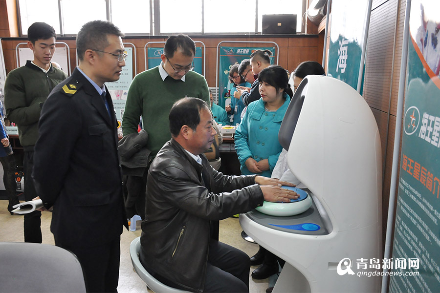 活動現(xiàn)場還來了兩位“不速之客”,來自青島海王星辰的兩臺的小機器人周圍圍滿了人群,把雙手放到小機器人的檢測儀圓盤上,根據(jù)電腦提示操作,只要微信關(guān)注就能檢測出居民的健康情況,消化系統(tǒng)、神經(jīng)系統(tǒng)、腦力、睡眠等相關(guān)的健康指標一下子就會出現(xiàn)在你的微信上。“真是神奇啊,就這么一個小機器人就能看病啦,還這么快就出來體側(cè)報告,如今的科技越來越超前?!爆F(xiàn)場居民李大爺興奮看著這兩個小機器人。