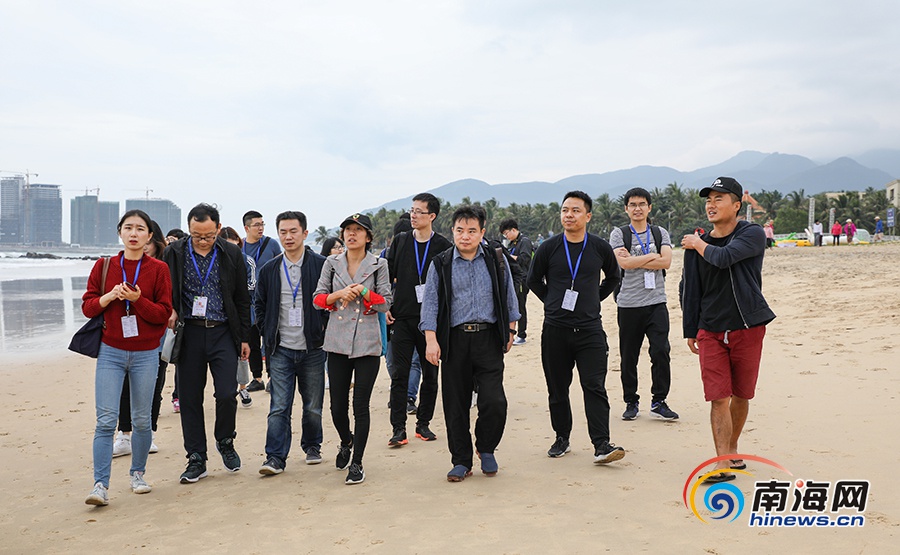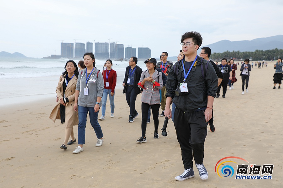 全國融媒代表參觀日月灣沖浪基地。南海網(wǎng)記者李昊攝