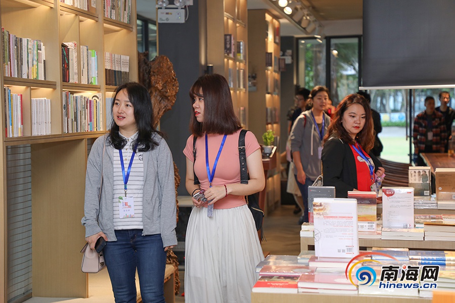 全國融媒代表參觀萬寧九里香書屋。南海網(wǎng)記者李昊攝