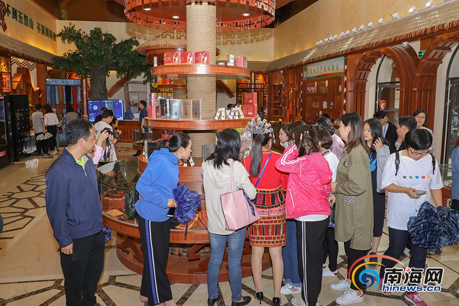 五指山市電子商務(wù)公共服務(wù)中心主要包括特色旅游商品展示區(qū)和電子商務(wù)體驗(yàn)辦公區(qū)兩大區(qū)域。走進(jìn)展示區(qū),“琥珀湯奶蜜香”的水滿紅茶正在講述一代代茶農(nóng)的勞作與收獲,富有民族特色的黎錦苗繡正在展示那絢麗多彩的民族記憶,土蜂蜜、百香果、山蘭米、憂遁草等一百多款五指山特色農(nóng)產(chǎn)品有序排列,吸引了采訪團(tuán)成員或駐足觀看,或拍照留念。