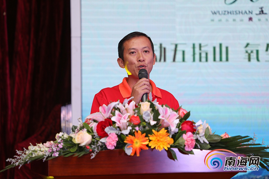 五指山紅峽谷副總經(jīng)理林道偉推介漂流季活動。南海網(wǎng)記者李昊攝