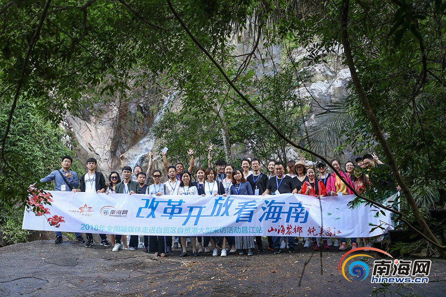 “改革開放看海南”2018年全國融媒體海南行采訪團在霸王嶺國家森林公園合影留念。南海網(wǎng)記者李昊攝