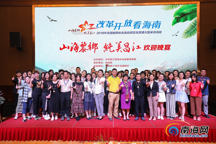 昌江黎族自治縣旅游資源推介會與會嘉賓和全國60余家網(wǎng)媒代表合影留念。南海網(wǎng)記者李昊攝