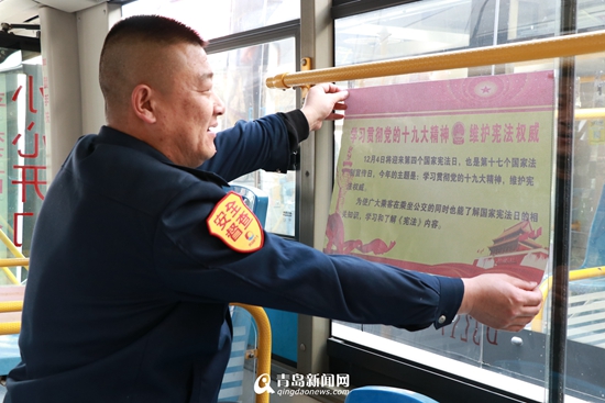 130路駕駛員唐永綱向記者介紹,這次主題車廂是采用網(wǎng)狀材質(zhì),將憲法宣傳圖貼在公交車玻璃上,既不妨礙乘客視線,又能起到宣傳作用,內(nèi)容主要圍繞“忠于憲法,維護憲法權(quán)威,履行法定職責,忠于祖國,恪盡職守”。另外,130路線駕駛員還向市民發(fā)放《憲法》宣傳冊,宣傳法律是時時刻刻與老百姓相關的法律意識,收到乘客好評。乘客李女士表示,今天乘坐公交車才知道是憲法宣傳日,確實給自己上了一課,自己會認真學習憲法知識。
