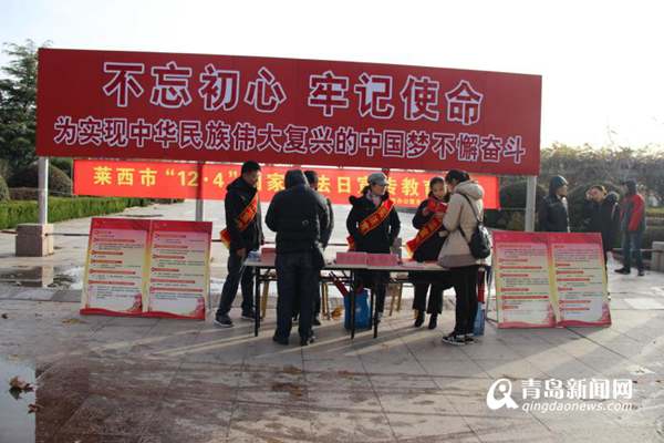 12月4日,萊西市依法治市辦公室組織市公安局、市檢察院、市水利局、市交通局、市國(guó)土局、市城建局等55個(gè)市直單位、2家企業(yè),在月湖廣場(chǎng)開展了國(guó)家憲法日大型集中宣傳教育活動(dòng),通過懸掛憲法宣傳橫幅、擺放憲法宣傳刊板、現(xiàn)場(chǎng)提供法律法規(guī)咨詢服務(wù)等形式,向過往群眾廣泛宣傳憲法及憲法修正案等有關(guān)法律法規(guī)知識(shí)。各單位共懸掛橫幅65條,展示宣傳刊板110余塊,發(fā)放各種法律法規(guī)宣傳材料2萬余份,直接受教育人數(shù)達(dá)2000余人,為群眾解答法律咨詢320余人次。同時(shí),各鎮(zhèn)街組織司法所、法律顧問以及基層法律服務(wù)者等鎮(zhèn)、街道政府駐地的中心大街或主要地段設(shè)立了法治宣傳點(diǎn),作為“12·4”集中宣傳的分會(huì)場(chǎng),向廣大的基層群眾進(jìn)行法治宣傳教育,共有200余名工作人員參加了法治宣傳,懸掛橫幅32條,擺放宣傳刊板70余塊,發(fā)放宣傳資料1萬3千余份,解答咨詢200余件,直接受教育人數(shù)達(dá)2400余人。