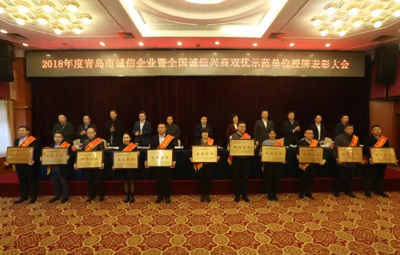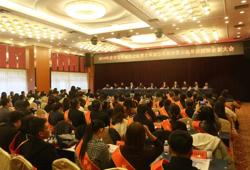 由青島市商業(yè)聯(lián)合會主辦的“2018年度誠信企業(yè)暨全國誠信興商雙優(yōu)示范單位授牌表彰大會”12月26日在青島市級機關(guān)會議中心舉行,向77家2018年度青島市誠信企業(yè)、19家2017年全國誠信興商雙優(yōu)示范單位頒發(fā)了獎牌。市經(jīng)信委、市商務(wù)局、市稅務(wù)局、市質(zhì)量技術(shù)監(jiān)督局、市物價局、市食品藥品監(jiān)督管理局、市勞動保障監(jiān)察局、市衛(wèi)生監(jiān)督局等部門領(lǐng)導(dǎo)及各區(qū)市商務(wù)(服務(wù)業(yè)發(fā)展)局負責(zé)同志、市誠信企業(yè)和全國誠信興商雙優(yōu)示范單位負責(zé)人共180余人參會。