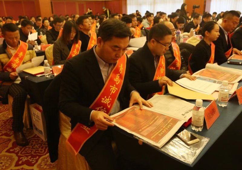 大會宣讀了《關(guān)于公布2018年度青島市誠信企業(yè)的通知》、《關(guān)于公布2017年全國誠信興商雙優(yōu)示范單位的通知》,銀和金融押運有限公司總經(jīng)理于波、新華錦信貿(mào)環(huán)球國際貿(mào)易有限公司CEO劉方義、青島海川建設(shè)集團有限公司副總裁王曉超分別代表全國誠信興商雙優(yōu)示范單位和誠信企業(yè)就加強誠信體系建設(shè)方面的經(jīng)驗做法進行了分享;青島市稅務(wù)局納稅服務(wù)處處長陳河針對新個稅及社保費繳納政策進行了詳細解讀。
