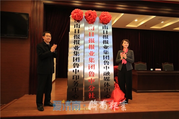 今天上午,濟(jì)南日?qǐng)?bào)報(bào)業(yè)集團(tuán)魯中分社揭牌儀式舉行。濟(jì)南日?qǐng)?bào)報(bào)業(yè)集團(tuán)董事長(zhǎng)、黨委書(shū)記、濟(jì)南日?qǐng)?bào)社社長(zhǎng)馬利和原萊蕪市委宣傳部副部長(zhǎng)、萊蕪報(bào)業(yè)傳媒集團(tuán)(萊蕪日?qǐng)?bào)社)黨委書(shū)記、社長(zhǎng)、總編輯李傳禎為“濟(jì)南日?qǐng)?bào)報(bào)業(yè)集團(tuán)魯中分社”“濟(jì)南日?qǐng)?bào)報(bào)業(yè)集團(tuán)魯中融媒體中心”“濟(jì)南日?qǐng)?bào)報(bào)業(yè)集團(tuán)魯中印務(wù)中心”揭牌。