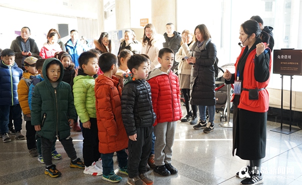 青島新聞網(wǎng)1月27日訊 今天上午,青島浮山路小學(xué)2018級五班假期游學(xué)活動舉行,近30名同學(xué)在家長的陪伴下,走進青島市博物館了解城市歷史。