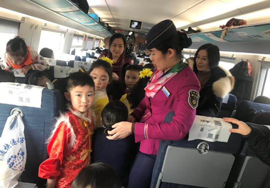 青島新聞網(wǎng)1月30日訊(記者 張力偉)在新春佳節(jié)即將到來之際,D6077次的工作人員們迎來了一群喜氣洋洋的“小天使”。