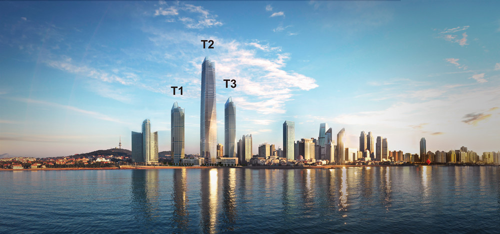 2號(hào)塔樓高369米,建成后將成為青島第一高樓。其中,6至48層為5A甲級(jí)寫(xiě)字樓,打造青島首座LEED金級(jí)、國(guó)家綠建三星雙重認(rèn)證的全視野海景辦公空間;標(biāo)準(zhǔn)層層高4.3米,凈高2.8-3米;擁有雙轎廂電梯,高效快捷;VAV系統(tǒng)、PM2.5過(guò)濾系統(tǒng)配合新風(fēng)系統(tǒng),保證室內(nèi)空氣清新。50-69層為山東省第一家超五星級(jí)瑞吉酒店,標(biāo)準(zhǔn)間面積55-60m㎡,將成為青島酒店業(yè)新標(biāo)桿。70層為1400多平方米的藝術(shù)中心,將在300米的高空打造城市文化藝術(shù)中心。71層至72層為城市觀光廳,于城市制高點(diǎn)360度收攬海景、山景與城市景觀;可以在高空玻璃體驗(yàn)裝置中,體驗(yàn)漫步云端的驚險(xiǎn)與浪漫;日間山海景觀與夜間奇幻燈光的配合,營(yíng)造美輪美奐的觀景體驗(yàn)。
