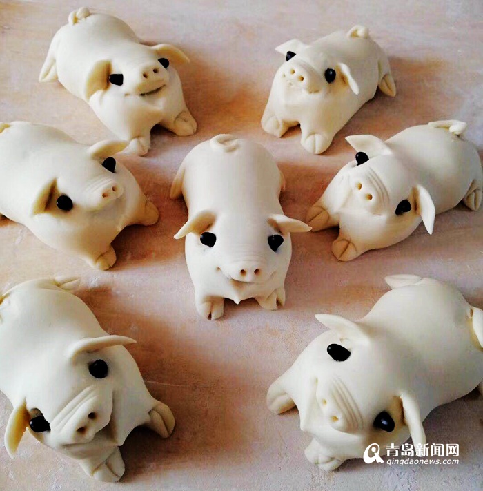心靈手巧的煙臺(tái)媳婦兒蒸出的豬餑餑。