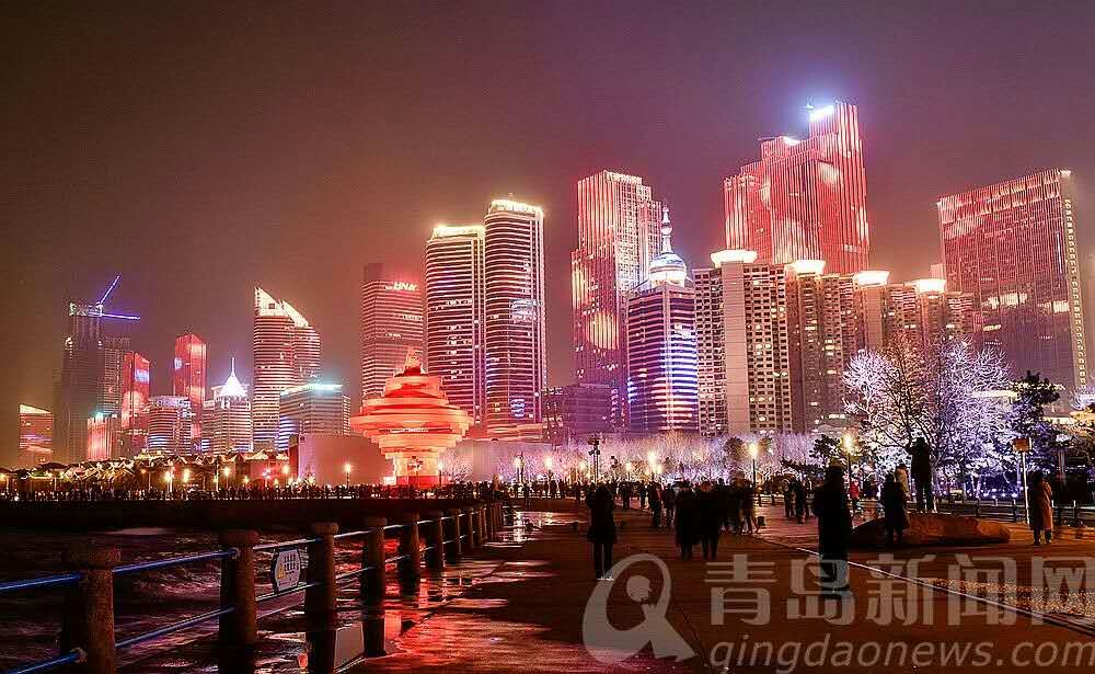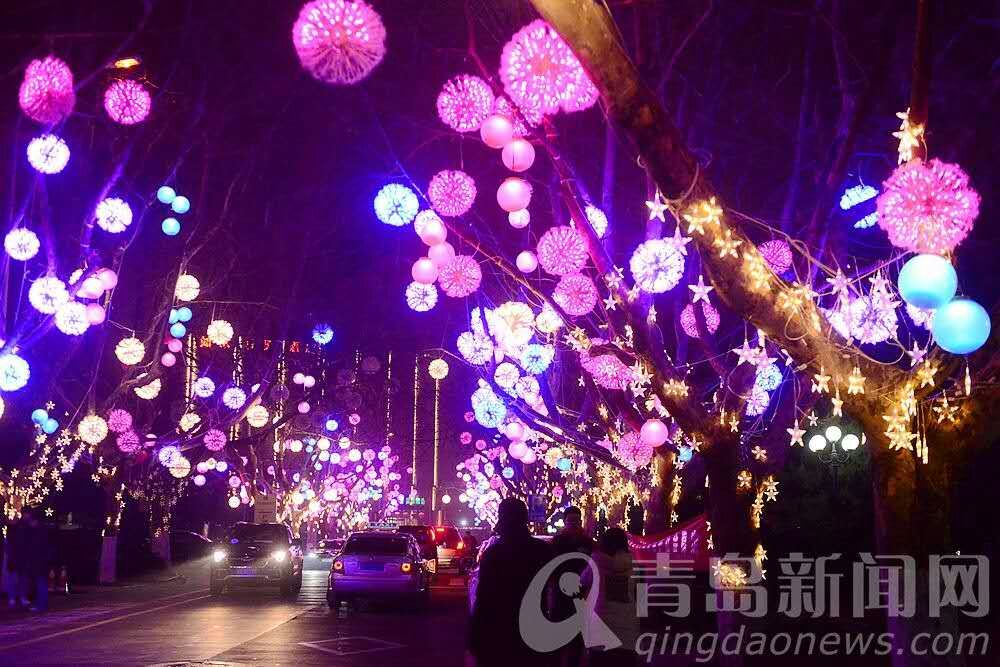 彩燈霓虹扮靚節(jié)日青島。(于少月攝)