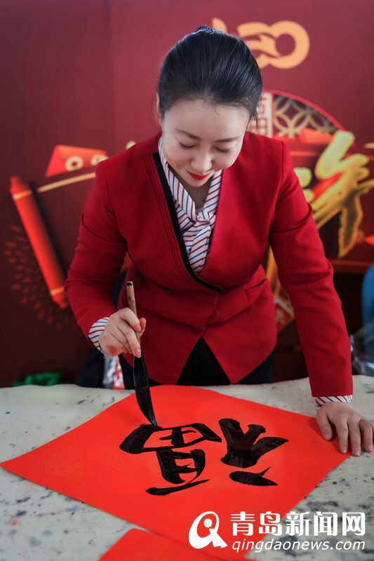 機(jī)場職工現(xiàn)場寫福字。(苗瑋攝)