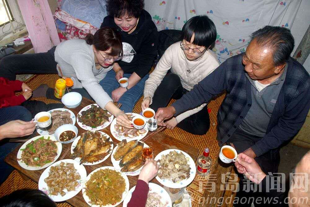 寒冷的冬天里,一家人圍坐炕頭喝酒吃飯。(逄淑才攝)