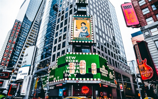 這場中國文化的潮牌熱度,也從紐約時裝周中國日秀場延伸到整座城市。在紐約時代廣場,變化炫目的青島啤酒經典1903復古罐與時尚優(yōu)雅老廣告畫,引發(fā)著非常高的回頭率。而在此次紐約時裝周中國日潮服發(fā)布之后,青島啤酒潮服受到了眾多紐約年輕人的喜愛和追捧,限量復古罐產品和走秀款時裝的限時發(fā)布,更在紐約街頭引起了民眾排隊追售。