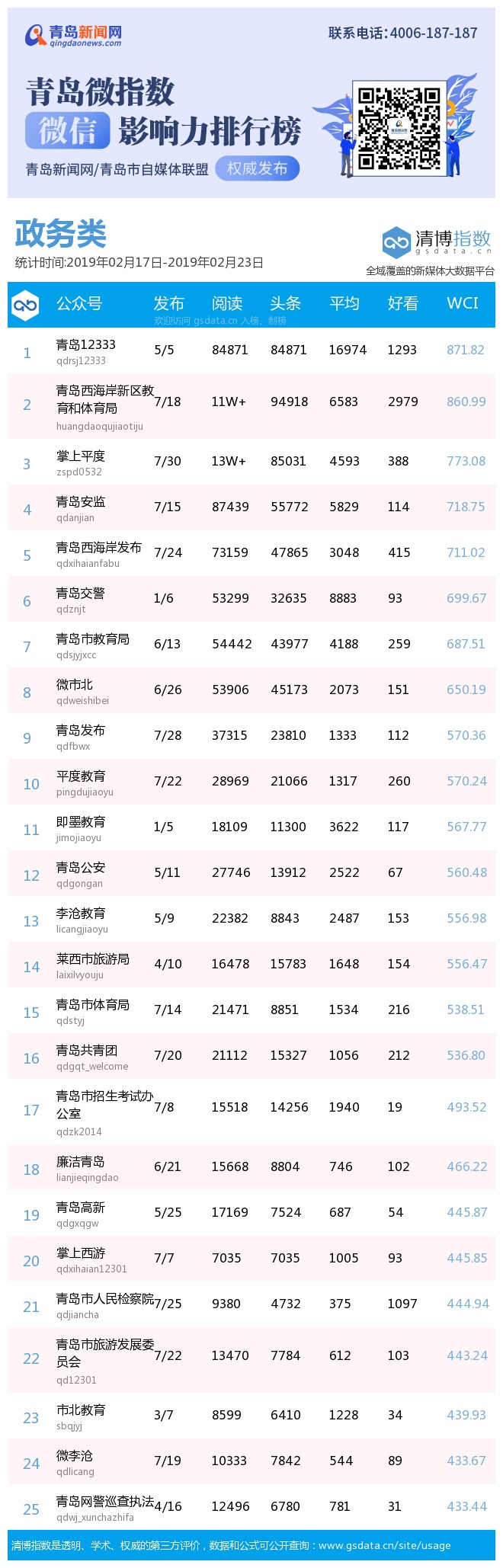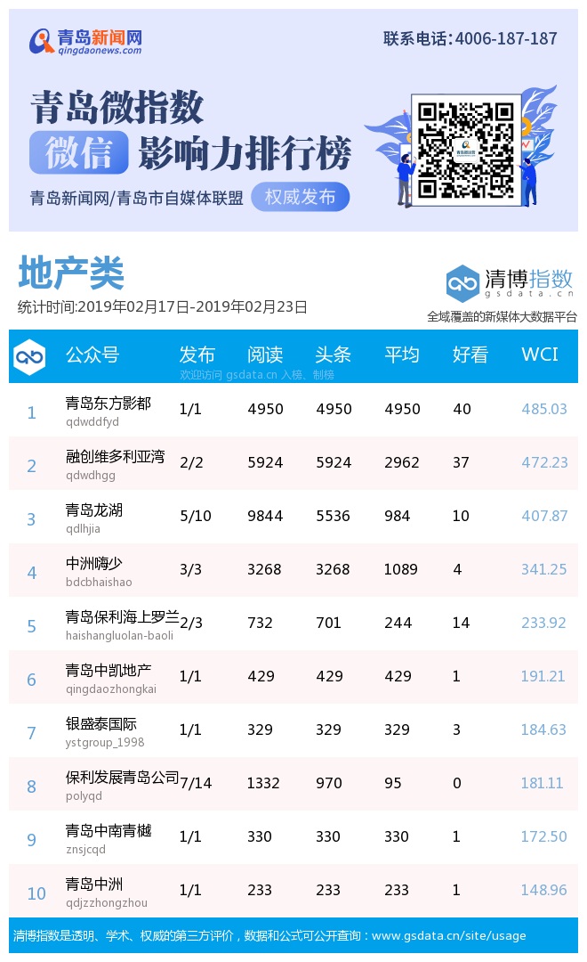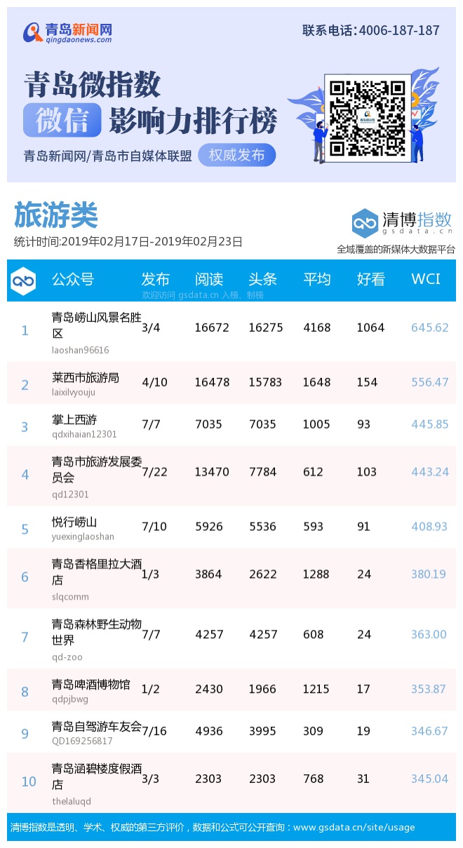 3、本次榜單收錄了青島14個行業(yè)微信公眾號,如您的賬號暫未收錄,可聯(lián)系4006-187-187。