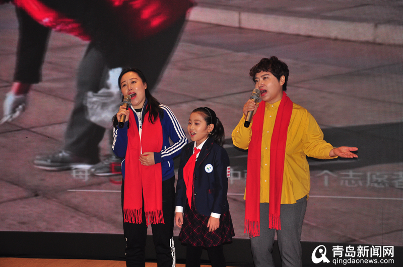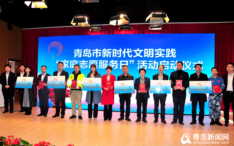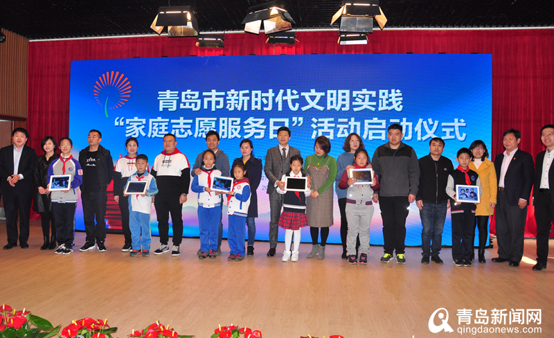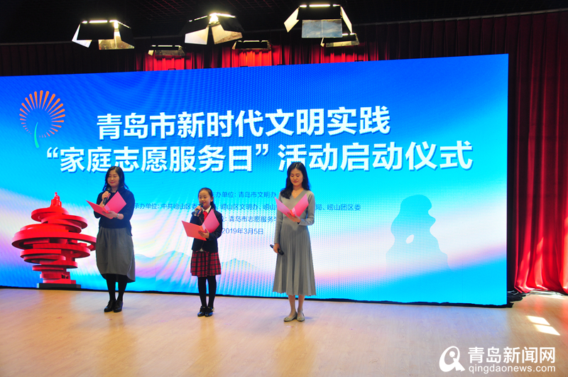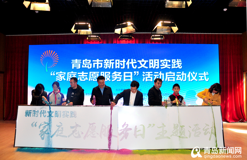 儀式最后,青島市委宣傳部副部長、市文明辦主任曹峰,嶗山區(qū)委常委、宣傳部部長王洵與志愿家庭代表一同登臺,以傾倒流沙的形式宣布“家庭志愿服務(wù)日”活動啟動。