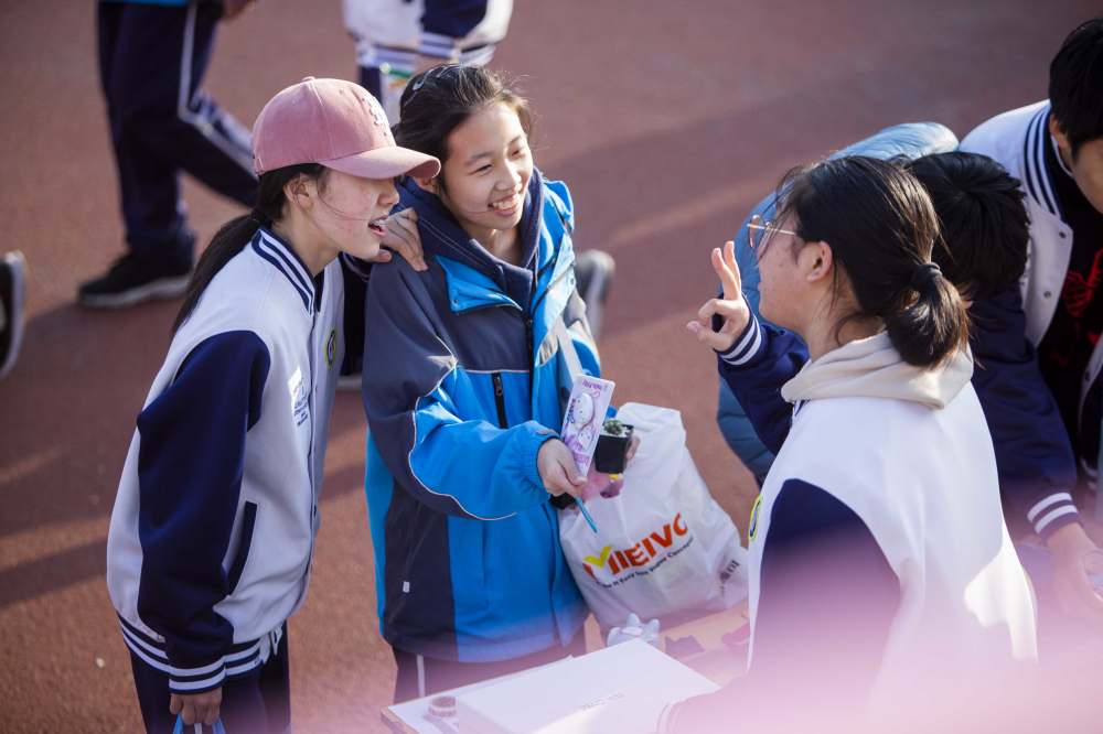 義賣當天,各班抓緊在操場布置自己班級的攤位,展示出精心制作的的宣傳廣告和海報,采用各種辦法吸引“小顧客”們的目光。同學們分工明確,有的當推銷員、有的當市場管理員、有的當認真記錄的收銀員,個個都忙得不亦樂乎。義賣開始后,同學們蜂擁而至把各個攤位圍得水泄不通。為了招攬客戶,有的同學還展示個人才藝,使出了渾身解數(shù)。