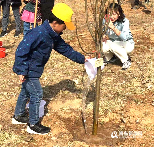 青島新聞網(wǎng)3月10日訊(記者 朱穎)挖坑、填苗、澆水、培土……今天上午,基隆路小學(xué)2018級(jí)5班的32名小同學(xué)在老師和家長們的帶領(lǐng)下來到世博園,小同學(xué)們和家長一起種下了帶有標(biāo)簽和寄語的小樹苗。小同學(xué)們?cè)谥矘溥^程中,不僅體會(huì)到“節(jié)約”用紙的重要性,還表示要更加愛護(hù)環(huán)境,發(fā)揚(yáng)互幫互助的集體意識(shí)。