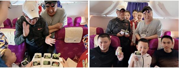 美好的時光總是短暫的,旅客們在萬米高空度過了一個別開生面的“植樹節(jié)”。大家對這段綠意盎然的旅程表示了贊賞,在歡樂的氛圍里乘務(wù)組與熱心旅客合影留念。