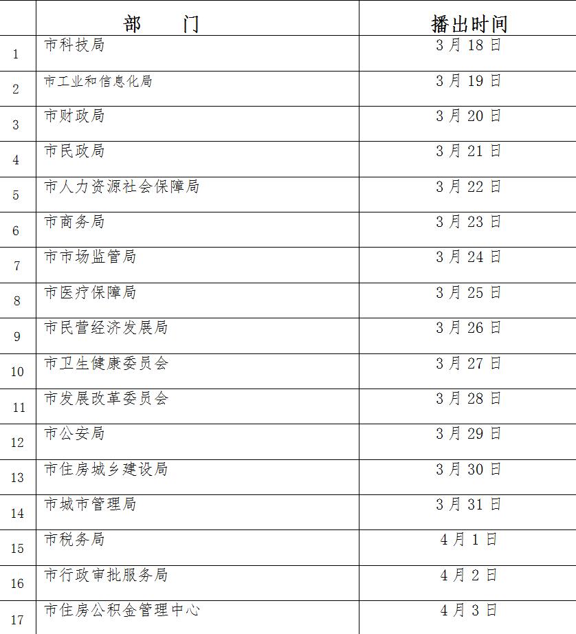 “惠企利民在身邊”系列電視訪談節(jié)目將于3月18日起,每晚21:30在青島電視臺新聞綜合頻道(QTV-1)《城市議事廳》欄目播出,青島人民廣播電臺FM107.6新聞廣播和藍睛客戶端同步播出,青島電視臺新聞綜合頻道(QTV-1)次日12:30左右重播。節(jié)目視頻同時上傳青島網(wǎng)絡廣播電視臺、青島政務網(wǎng)首頁,青島新聞網(wǎng)、半島網(wǎng)、青島財經(jīng)網(wǎng)進行網(wǎng)絡鏈接,供市民和企業(yè)點擊觀看。